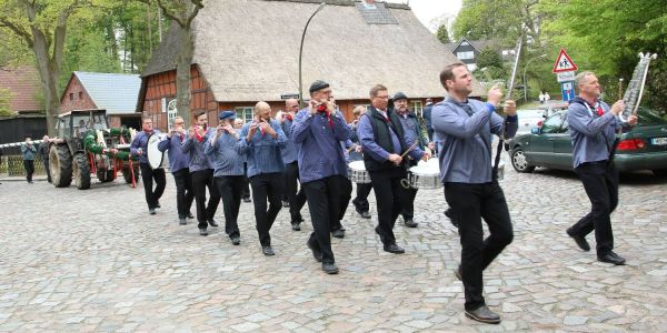 Der Spielmannszug Marmstorf sorgte für die passende Musik zum Start in den Mai. Foto: Christian Bittcher