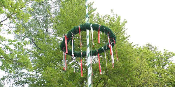 Der Maibaum steht, die Krone flattert im Wind! Foto: Christian Bittcher