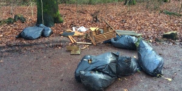 Waldparkplatz Appelbüttel, An der Majestätischen Aussicht und am Ehestorfer Weg, Ecke Harburger Stadtweg wurde jede Menge Müll im Landschaftsschutzgebiet, anstatt ihn legal zu entsorgen.