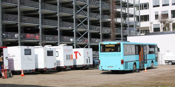 Die Fahrzeuge der Film-Firma an der Theodor-Yorck-Straße Foto: cb