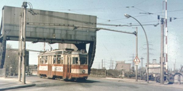 Die Straßenbahn der Linie 12 fuhr bis 1971 durch den Binnenhafen. Foto: Geschichtswerkstatt Harburg