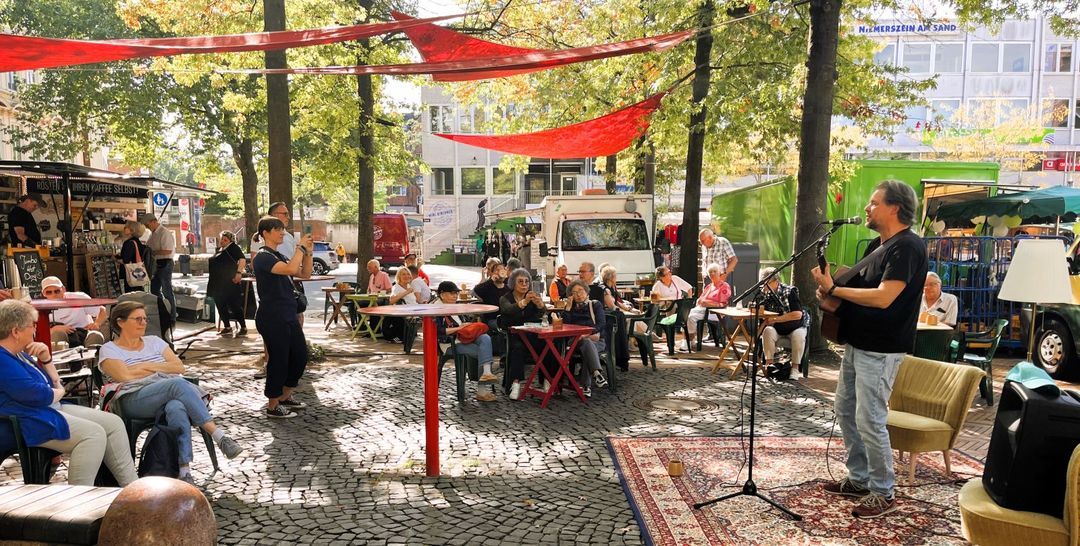 Außerdem gab es ein Kinderprogramm mit den Falkenflitzern und ein Wohnzimmer-Konzert mit mehreren Musikern. Unter anderem sorgte Singer/Songwriter Jan Schröder für Begeisterung. Harburgs Stadtmaler Ralf Schwinge, der die neuen Marktschilder (Foto oben) gestaltet hat, gab einen Einblick in seine Arbeit.