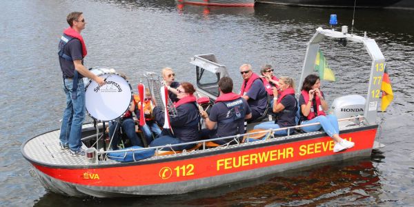 Super Idee: Der Spielmannszug der FF OverBullenhausen spielte auf dem Wasser. Foto: Christian Bittcher