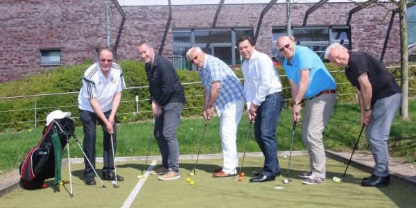 Auch Golf kann man beim HTB spielen: HTB-Vize Ralph Fromhagen (links) demonstriert auf dem Putting Green wie es geht. Foto: Christian Bittcher