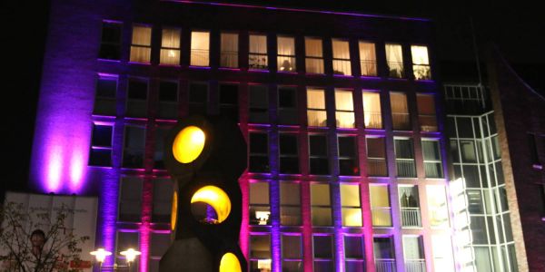 Das Gloria-Gebäude und die Tunnel-Säule von Johannes Ufer wechselten die Farben. Foto: cb