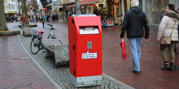 gab immer wieder technische Probleme mit den knallroten solarbetriebenen Mülleimern. Jetzt zog die Stadtreinigung die Notbremse und transportierte die Solarpressbehälter wieder ab. Jetzt stehen in der Lü wieder die normalen Mülleimer.