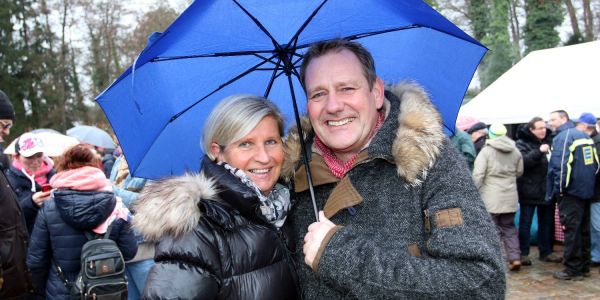 Gut beschirmt: Gildekönig Jörg Geffke und seine Partnerin Birgit Wöckener hatten Spaß bei der Teichwette. Foto: Chrisitan Bittcher