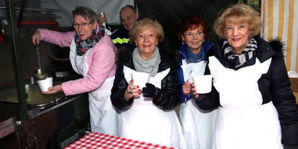 Die Schützenfrauen versorgten die Gäste mit deftiger Erbsensuppe. Foto: Christian Bittcher