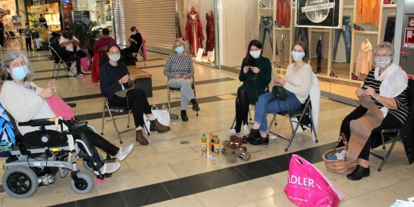 In den Harburg Arcaden wurde wieder gestrickt für die Aktion 100 Schals für Obdachlose. Foto: Christian Bittcher