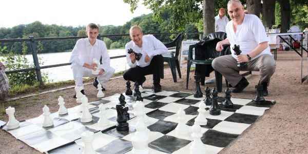 Grün-Weiss Harburg spielte beim Weißen Dinner Schach. Eine Aktion zum Vereinsjubiläum. Foto: Christian Bittcher
