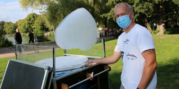 Mike Pickhardt zauberte alle 20 Sekunden ein neues Schaumlogo und zog so die Blicke auf sich. Foto: Christian Bittcher