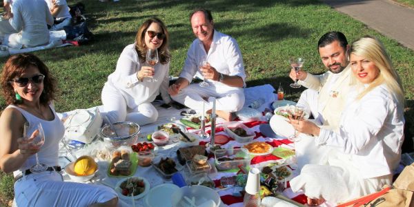 Traditionell wedelt man beim Weißen Dinner regelmäßig mit dem Taschentuch und grüßt so die anderen Teilnehmer. Foto: Christian Bittcher