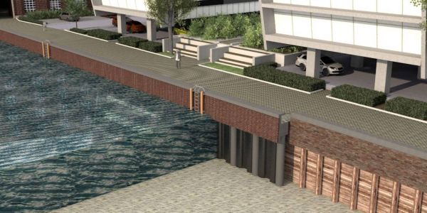 Nicolas Wrogemann erklärt, wie die Arbeiten ausgeführt werden: „Es wird eine Stahlspundwand vor der historischen Uferwand errichtet. Diese sichert den Geländesprung zwischen Kanalsohle und Promenade ab und stellt die Standsicherheit wieder her. Um das Erscheinungsbild der denkmalgeschützten Ufereinfassung beizubehalten, werden auf dieser Stahlspundwand Stahlbetonfertigteile mit nachträglich aufgebrachter Klinkeroptik aufgesetzt.“