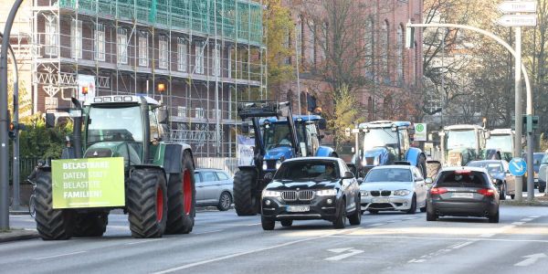 Noch immer sind Trecker in Richtung Wilhelmsburg unterwegs. Nach der Kundgebung der Landwirte am Gänsemarkt, deren Adressaten die Umweltminister der Bundesländer und des Bundes sind, die in Hamburg tagen, werden sie den Rückweg antreten. Das wird am Nachmittag sein.