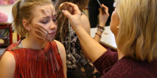 Doch an diesem Wochenende ist in der Grundschule Vahrendorf wieder einmal alles anders. Die Musical Kids Hamburg haben die Räume in Beschlag genommen und das heißt auch, dass einer der Räume zu einer kompletten Nähwerkstatt umfunktioniert wurde. Mit pausenlos ratternden Nähmaschinen und Jugendlichen, die immer wieder rein- und rausgehen. Ihre Kostüme werden angepasst, umgenäht und teilweise komplett neu gestaltet.