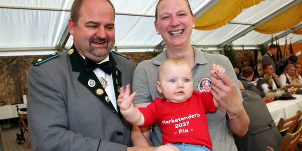 Gestatten: Pia wird die Marketenderin im Jahr 2037. Das sechs Monate alte Mädchen ist der ganze Stolz der Eltern Martina Jung und Alexander Schmidt. Foto: Christian Bittcher