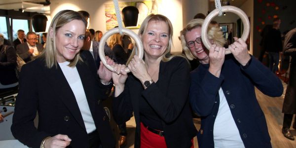 Maya Meinecke (v.l.), Melanie-Gitte Lansmann und Birgit Stöver probierten die Ringe auf der Spiele Ebene des HIP aus. Foto: Christian Bittcher