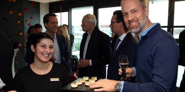 Christoph Birkel (hit-technopark) greift bei den Häppchen zu. Foto: Christian Bittcher