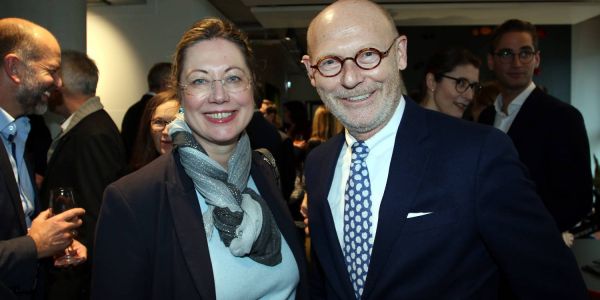 Franziska Wedemann, Vorsitzende des Harburger Wirtschaftsvereins im Gespräch mit Wirtschafts-Senator Michael Westhagemann. Foto: Christian Bittcher