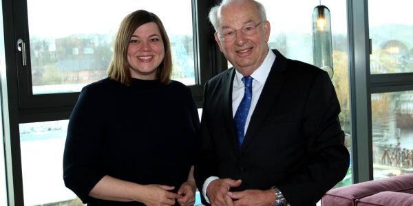 Um es kurz zu machen: Es waren launige Reden in einem kleinen Kreis, die gehalten wurden, bei denen Fegebank Bauherr Arne Weber als "weitsichtigen und leidenschaftlichen" Mann bezeichnet hatte, der den Standort Binnenhafen "nach vorn gebracht" habe. Der parteilose Westhageman hielt eine leidenschaftliche Rede für den Wasserstoffantrieb und piesakte seine grüne Senatskollegin Fegebank nach simplen Rechenbeispielen, die die Vorteile zum Elektroantrieb herausstellten, mit den Worten "Katharina, hast du aufgepasst". Arne Weber beschrieb in seiner unvergleichlichen Art die Sorgen und Nöte eines Bauherrn ohne unterschriebenen Mietvertrag, um am Ende nicht ganz ernst festzustellen: "Lasst und wieder Freunde werden", nicht ohne den kleinen Hinweis zu unterschlagen, dass es sonst kaum oder gar keine Investoren gibt, die so ein Projekt ohne vorher abgeschlossenen Mietvertrag realisiert hätten.